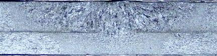 Vorderseite einer plasmapunktgeschweißten Verbindung aus 2,0 mm auf 1,0 mm Schwarzblech, (Schweißzeit pro Punkt = 1,0 s)