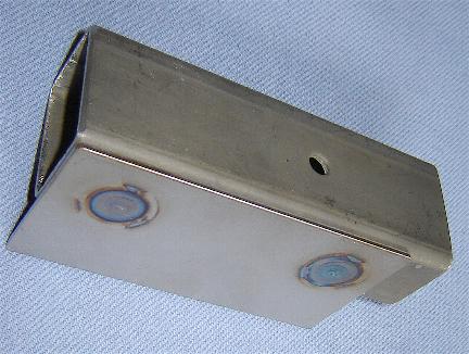 Mit dem Plasmapunktgeschweißverfahren aufgeschweißtes Blech aus 1,5 mm Schwarzblech auf ein phosphatiertes Hohlprofil aus S 460, (Schweißzeit pro Punkt = 1,2 s)